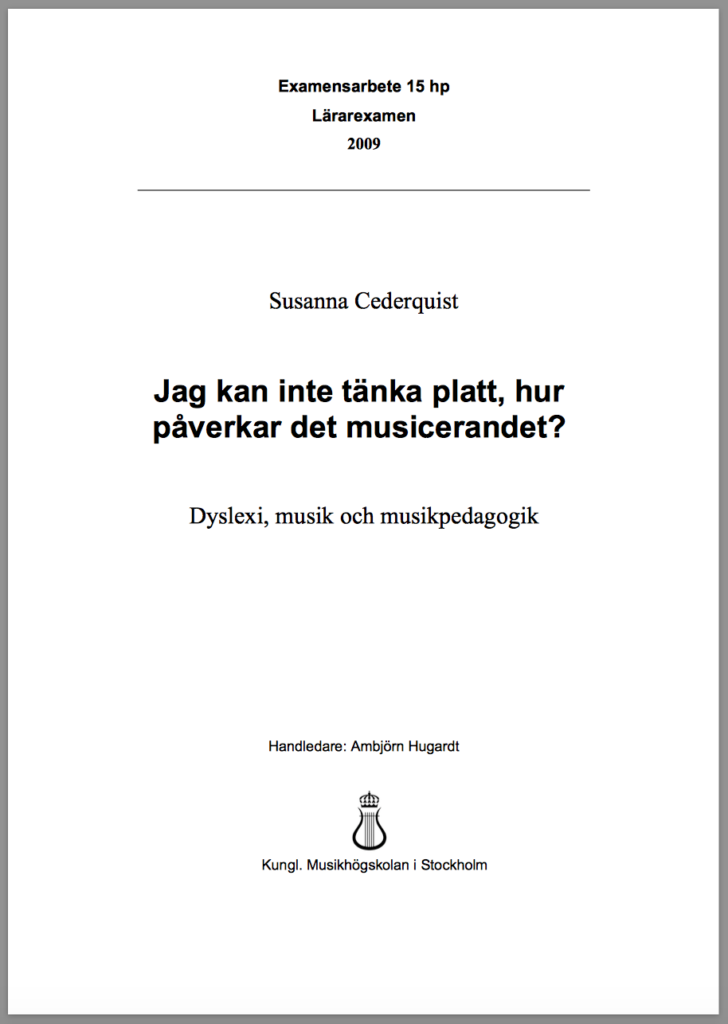 Susanna Cederquist uppsats i ämnet dyslexi och musik: