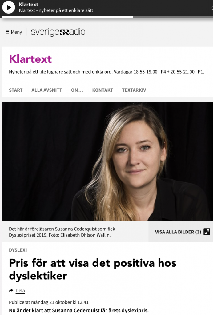 Sveriges Radio lyfte Dyslexipriset och dess motivering. Kul att ämnet sprids! Hör inslaget i länken nedan, högst upp på sidan.
