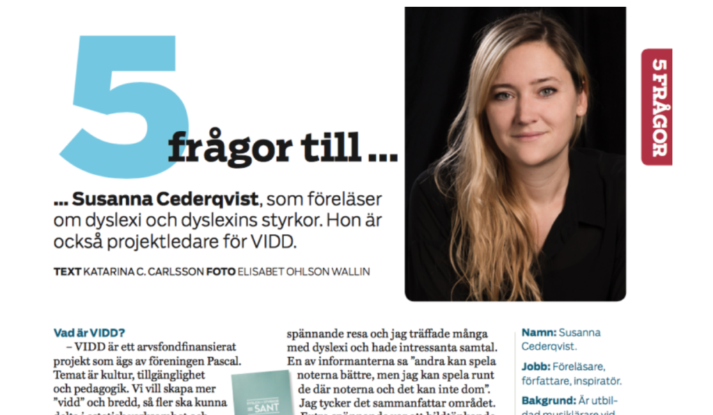 En liten tillbakablick: Under 2019 blev jag intervjuad i Myndigheten för tillgängliga mediers tidskrift Läsliv. Artikeln handlar om mitt dyslexiarbete och lite om mitt dåvarande arbete inom projektet VIDD. Jag samarbetade även samma vår, 2019, inom projektet med MTM i VIDD-dagen med tema ”Tillgänglig text och skönlitteratur” på Strindbergs Intima teater i Stockholm. Här följer…
