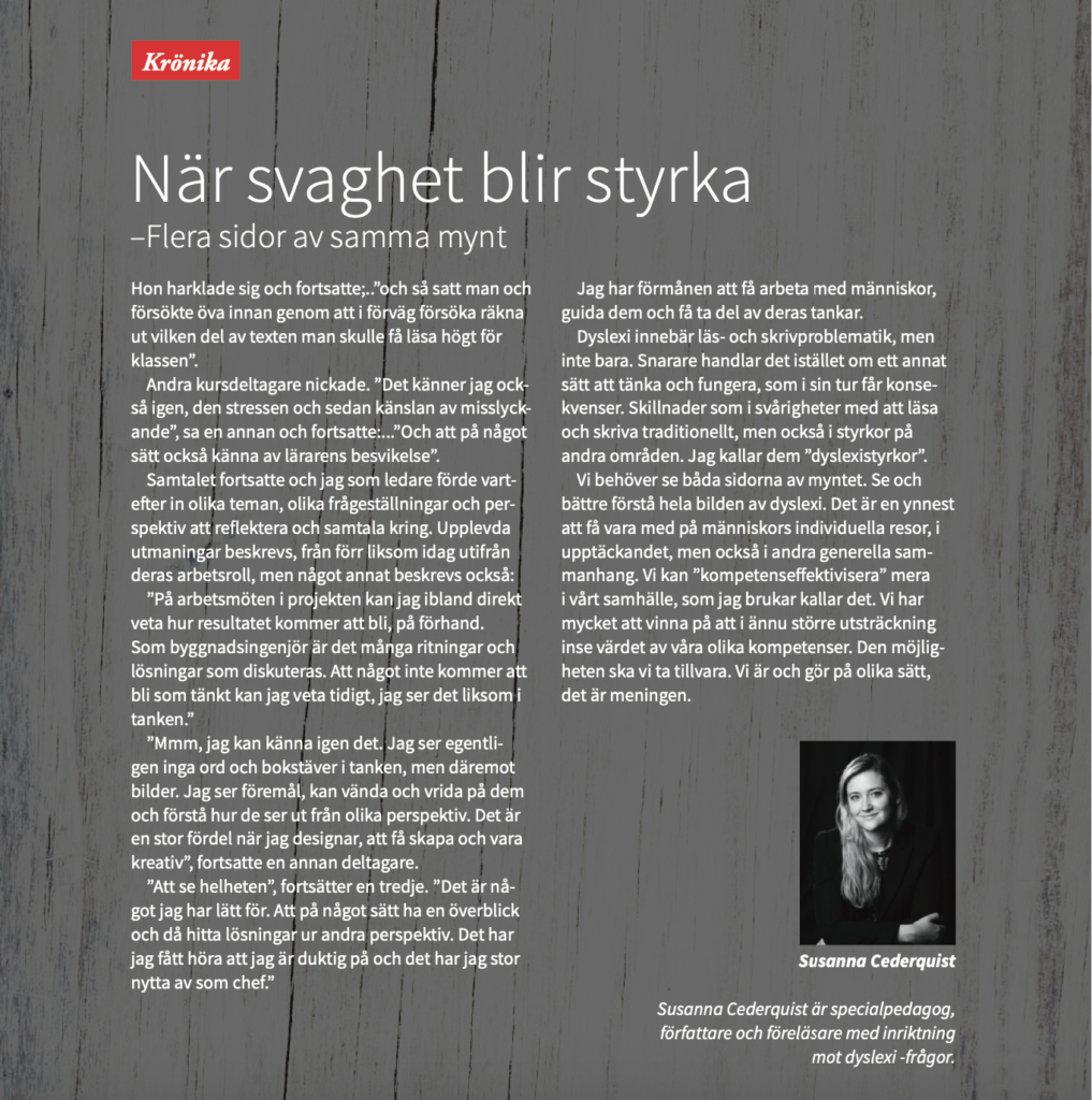 Nyligen blev jag tillfrågad om jag ville skriva en krönika med titeln: Från svaghet till styrka – flera sidor av samma mynt. Och jag antog utmaningen!